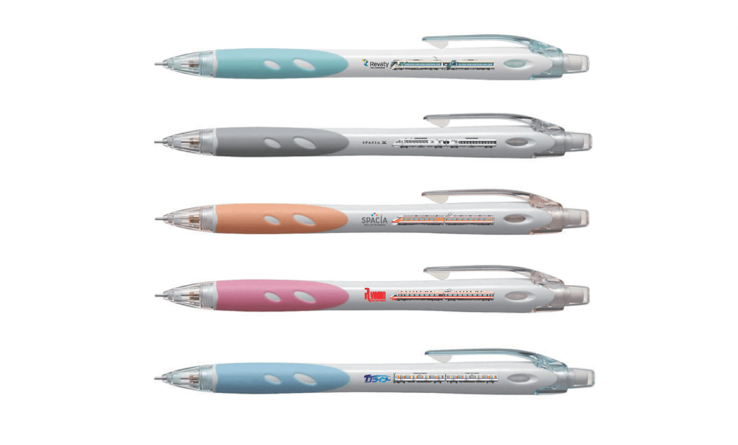 東武鉄道の車両をデザインしたシャープペンです。本体のボディカラーも車両のイメージに合わせています。ふだん使いやお土産にも使いやすいリーズナブルなお値段でご用意しました。
