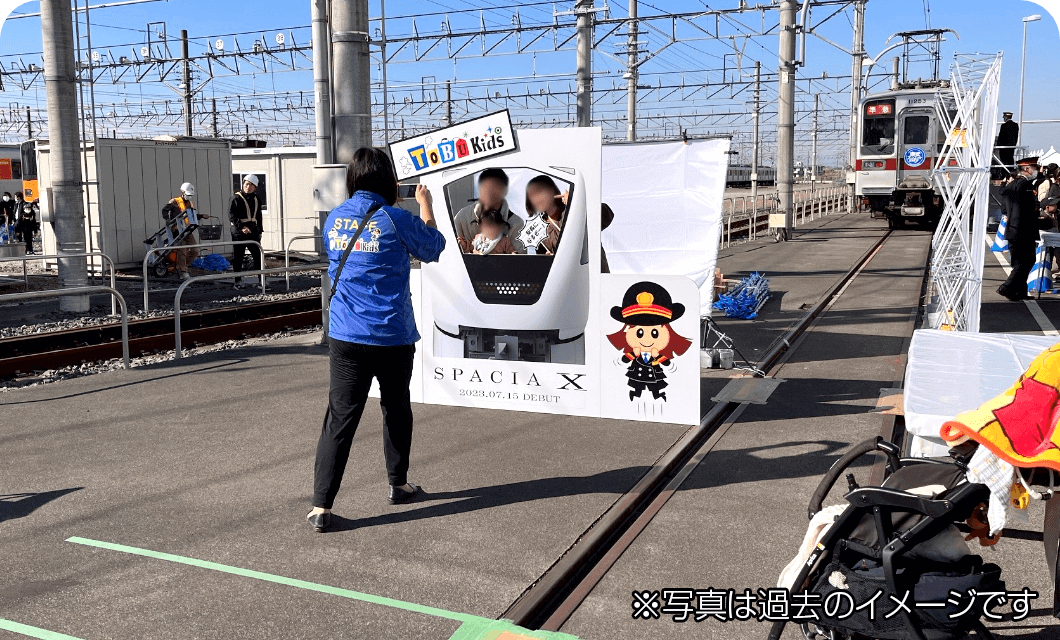 入場無料(一部有料イベントあり/事前応募制あり) キッズ向け:クイズラリー、こども制服着用体験、ミニSL試乗会など 特別運行:TM(TOBU MOTORCAR)ライナー、臨時列車ツアー(THライナー車両) 来場記念品の無料配布はございません。 画像はすべてイメージです。